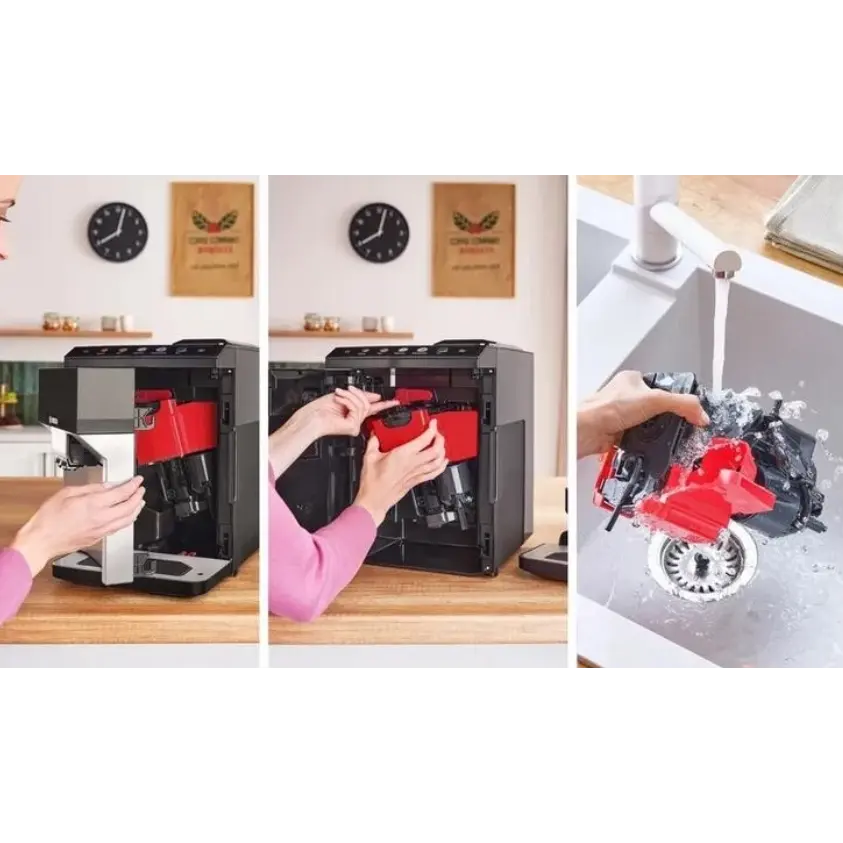 ყავის აპარატი BOSCH TPE40307 წარმოადგენს თანამედროვე ტექნოლოგიებით აღჭურვილ მოდელს, რომელიც ქმნის სრულყოფილ ბალანსს ხარისხსა და სიმარტივეს შორის. მოწყობილობა გამოირჩევა ძლიერი ტუმბოთი, რომელიც უზრუნველყოფს ოპტიმალურ წნევას და არომატის სრულ გახსნას თითოეულ ფინჯანში. მაღალი ხარისხის კერამიკული საფქვავი ფრთხილად ამუშავებს მარცვლებს, რათა ყავამ შეინარჩუნოს ბუნებრივი სურნელი და სიმდიდრე. ინტუიციური კონტროლის პანელი საშუალებას გაძლევს მარტივად აირჩიო სასურველი სასმელი, ხოლო ავტომატური გაწმენდის სისტემა ზრუნავს მოწყობილობის ხანგრძლივ და ჰიგიენურ გამოყენებაზე. BOSCH TPE40307 გთავაზობს შესაძლებლობას მოამზადო ესპრესო, კაპუჩინო ან ლატე მაკიატო ერთი შეხებით. ელეგანტური დიზაინი და BOSCH-ის სანდოობა მას აქცევს იდეალურ დამატებად როგორც სახლისთვის, ისე ოფისისთვის.