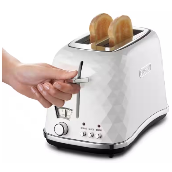 ტოსტერი DELONGHI CTJ2103.W არის თანამედროვე და მძლავრი მოწყობილობა, რომელიც განკუთვნილია გემრიელი და ხრაშუნა ტოსტის სწრაფად და მარტივად მოსამზადებლად. მისი 900 ვატიანი სიმძლავრე უზრუნველყოფს სწრაფად და თანაბრად შეწითლებას. ტოსტერს აქვს ორი სლოტი, რომლებიც შესაფერისია სხვადასხვა სისქის პურისთვის. აღჭურვილია რეგულირებადი შეწითლების კონტროლით, რომელიც საშუალებას გაძლევთ აირჩიოთ სასურველი დონე. "Defrost", "Reheat" და "Cancel" ფუნქციები ზრდის მოხმარების კომფორტს. მისი უნიკალური და ელეგანტური თეთრი (White) დიზაინი შექმნილია დახვეწილი და თანამედროვე სამზარეულოსთვის. მოსახსნელი ნამცხვრის თეფში აადვილებს გაწმენდას და შენახვას. DELONGHI CTJ2103.W - სტილი, სიმარტივე და გემრიელი საუზმე ერთ მოწყობილობაში.