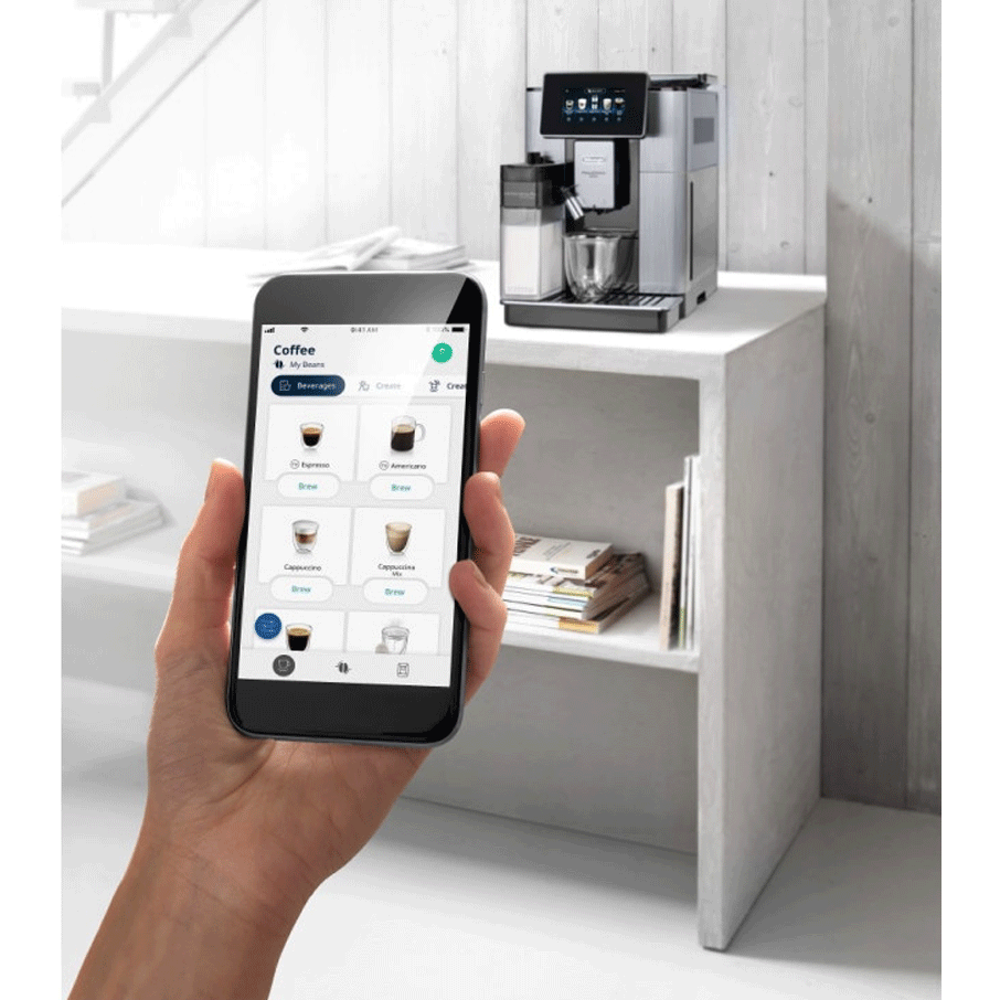 ყავის აპარატი Delonghi ECAM610.75.MB წარმოადგენს პრემიუმ კლასის სრულად ავტომატურ მოწყობილობას, რომელიც აერთიანებს თანამედროვე ტექნოლოგიებსა და იტალიურ დიზაინს. მისი სენსორული 5 დიუმიანი TFT ეკრანი უზრუნველყოფს ინტუიციურ და მარტივ მართვას, ხოლო Coffee Link აპლიკაციის მეშვეობით შეგიძლიათ სასმელების პერსონალიზაცია პირდაპირ სმარტფონიდან. ინტეგრირებული LatteCrema Hot და LatteCrema Cool სისტემები ქმნიან იდეალურ ქაფს როგორც ცხელი, ისე ცივი სასმელებისთვის. აპარატი აღჭურვილია მაღალი ხარისხის კერამიკული წისქვილით 13 საფეხურით, რაც უზრუნველყოფს მარცვლოვანი ყავის სრულფასოვან არომატს. Delonghi ECAM610.75.MB თავსებადია როგორც მარცვლოვან, ისე დაფქულ ყავასთან, ხოლო ავტომატური გაწმენდის სისტემა ამარტივებს მოვლას. ელეგანტური მეტალის დიზაინი და კომპაქტური ფორმა მას აქცევს საუკეთესო არჩევანად მათთვის, ვისაც სურს კომფორტი და პროფესიონალური ხარისხი სახლში.