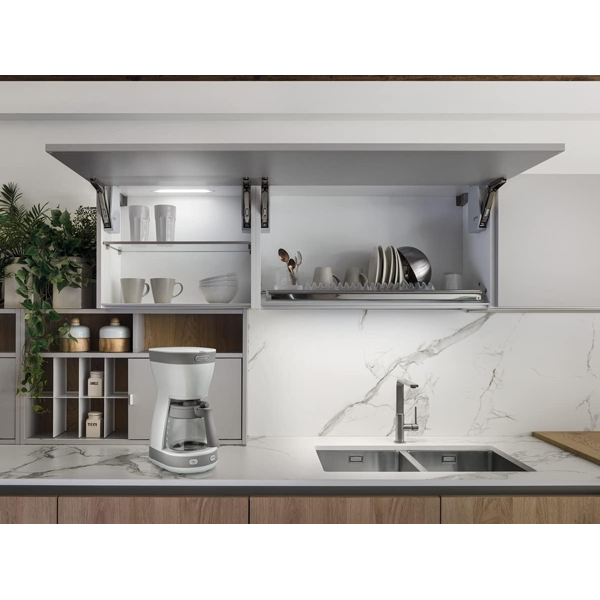 ყავის აპარატი Delonghi ICM16210.WS არის ფუნქციური და ელეგანტური ფილტრიანი ყავის მანქანა, რომელიც იდეალურია დიდი რაოდენობით ყავის მოსამზადებლად. 1.25 ლიტრიანი მინის კარაფი საშუალებას გაძლევთ ერთდროულად მოამზადოთ რამდენიმე ფინჯანი არომატული ყავა, რაც ოჯახური საუზმისა თუ სტუმრების მიღებისას განსაკუთრებით კომფორტულია. მოწყობილობა აღჭურვილია არაწვეთოვანი სისტემით, რომელიც საშუალებას გაძლევთ კარაფი ამოიღოთ მომზადების პროცესის დროს, და თერმული გამათბობლით, რომელიც ინარჩუნებს სასმელის ტემპერატურას. ინტუიციური მართვის პანელი და ნათელი ინდიკატორები ამარტივებს ყოველდღიურ გამოყენებას. მისი დიზაინი, თეთრი და ვერცხლისფერი დეტალებით, შესანიშნავად ერწყმის თანამედროვე სამზარეულოს ინტერიერს. Delonghi ICM16210.WS არის საუკეთესო არჩევანი მათთვის, ვინც აფასებს ხარისხს, კომფორტს და კლასიკურ ყავის არომატს.