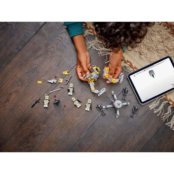 LEGO Star Wars 327th Star Corps Clone Troopers Battle Pack არის უნიკალური კონსტრუქტორი, რომელიც საშუალებას გაძლევთ ააგოთ და გააცოცხლოთ გალაქტიკური ომების ერთ-ერთი ყველაზე საინტერესო სცენა. კომპლექტში შედის რამდენიმე დეტალურად დამუშავებული კლონტრუპერის ფიგურა, იარაღები და პატარა საბრძოლო ტექნიკა, რაც თამაშს რეალისტურ და დინამიკურ სახეს აძლევს. მაღალი ხარისხის LEGO დეტალები გამძლეა და მარტივად ეწყობა, რაც პროცესს უფრო სასიამოვნოს ხდის როგორც ბავშვებისთვის, ასევე კოლექციონერებისთვის. Battle Pack იდეალურია იმათთვის, ვისაც სურს გაფართოოს საკუთარი Star Wars კოლექცია და შექმნას კიდევ უფრო მასშტაბური ბრძოლები. ეს მოდელი ხელს უწყობს კრეატიულობას, წარმოსახვასა და გუნდური თამაშის უნარებს. LEGO Star Wars 327th Star Corps Clone Troopers Battle Pack არის შესანიშნავი საჩუქარი ნებისმიერი ასაკის Star Wars-ის ფანებისთვის, რომლებიც ოცნებობენ საკუთარი გალაქტიკის შექმნაზე.