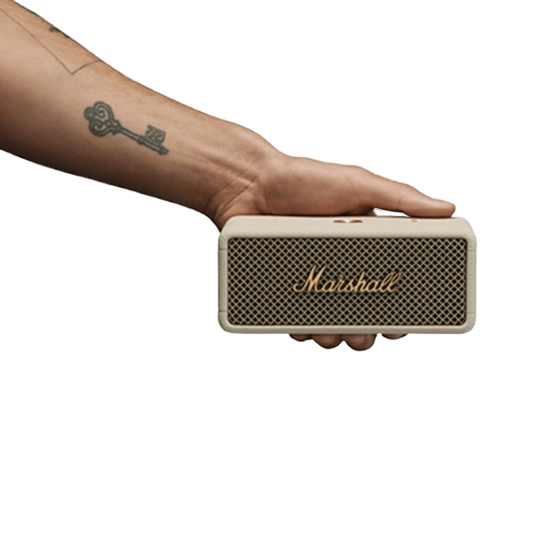 Marshall Emberton Cream არის სტილური და კომპაქტური პორტატული Bluetooth დინამიკი, რომელიც აერთიანებს კლასიკურ Marshall დიზაინს და მაღალი ხარისხის ჟღერადობას. True Stereophonic ტექნოლოგია უზრუნველყოფს 360 გრადუსიან ხმოვან ეფექტს, მკვეთრ ბასს და სუფთა მაღალ და საშუალო ტონებს. მოწყობილობა გამოირჩევა IPX7 წყალგამძლეობით, რაც საშუალებას გაძლევთ გამოიყენოთ იგი როგორც სახლში, ისე ღია სივრცეში, უსაფრთხილოდ ნებისმიერი ამინდის პირობებში. ერთი დატენვით შესაძლებელია 20 საათამდე უწყვეტი მუსიკის მოსმენა, ხოლო სწრაფი დატენვის ფუნქცია გაძლევთ დამატებით საათებს რამდენიმე წუთში. მოსახერხებელი მართვის ღილაკები უზრუნველყოფს მარტივ და კომფორტულ გამოყენებას. Marshall Emberton Cream არის იდეალური არჩევანი მათთვის, ვინც ეძებს ხარისხიან, პორტატულ და სტილურ დინამიკს.