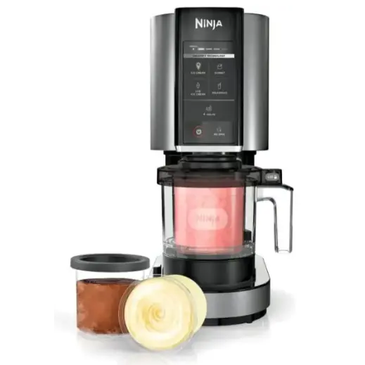 Ninja NC300EU ნაყინის აპარატი საშუალებას გაძლევთ სახლის პირობებში სწრაფად მოამზადოთ ნაყინი, გელატო, სორბეტი, მასხკეიკი და smoothie ბოული. მისი Creamify™ ტექნოლოგია დარწმუნებით ამცირებს ყინულის კრისტალებს და ქმნის ხალასი, კრემოვან სტრუქტურას წუთებში. მარტივი სკამპანელი უზრუნველყოფს 7‑გვერდიან პროგრამულ რეჟიმს: Ice Cream, Sorbet, Gelato, Milkshake, Smoothie Bowl, Lite Ice Cream და Mix‑In. არ მოგიწევთ განსაკუთრებული დანაყვლება base-ის მომზადებაში – გააკეთეთ საწყისი ნარევი, გაყინეთ 24 საათით და მაშინვე მოყვანთ სასურველ შედეგს. მოცულობა 1.4 ლ (3 საღობიანი ტუბები 470 მლ‑მდე) მოიცავს სწრაფ მომზადებას და საცავის ფუნქციებს. ნაყინის ტუბები, სამუშაო პირები და პარკებია საშრობითად წასაკრეფი, რაც ადვილი წმენდას უზრუნველყოფს. იდეალურია მათთვის, ვინც ეძებს მრავალფეროვან, ჯანსაღ და შემოქმედებით ნაყინურ გამოცდილებებს.