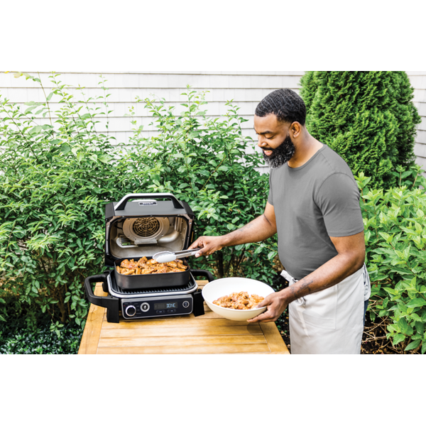 Ninja OG701EU Woodfire ღია სივრცის გრლი აერთიანებს 7‑ინ‑1 ფუნქციას – Master Grill, BBQ Smoker, Air Fryer, Roast, Bake, Dehydrate და Reheat. Woodfire ტექნოლოგია იყენებს ელექტროენერგიას გრილისთვის, ხოლო ხის მარცვლები უზრუნველყოფენ ნამდვილ კვამლიან სუნს. 1760 W-იანი ტემპერატურის სისტემა სწრაფ გაცხლებას უზრუნველყოფს, ხოლო 180 კვადრატული დუიმიანი გრლი ზედაპირი საშუალებას იძლევა გამოაცხოთ ბურგერები, სტეიქები და veggies არსებული ადგილი. კომპაქტური და weather‑resistant დიზაინი მცირე აივნებისთვის შესაფერისია, და non‑stick გრლი გრეიტები ადვილად იწმინდება. შეფუთვაში შედის smoker box, pellet scoop, grease tray და სტარტერი ხის ბურჯები. იდეალურია იმათთვის, ვისაც სურს ავტენტიური BBQ მირთმევა ფურცელზე მზარეულების გარეშე.