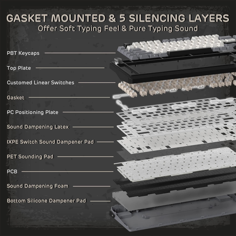 კლავიატურა Royal Kludge RK L75 RGB არის კომპაქტური მექანიკური კლავიატურა, რომელიც აერთიანებს მაღალ წარმადობას, კომფორტს და ელეგანტურ დიზაინს. აღჭურვილია Cream Switch-ებით, რომლებიც გამოირჩევიან რბილი და მწყობრი რეაგირებით, რაც შესანიშნავია როგორც გეიმინგისთვის, ისე ხანგრძლივი ტექსტურ მუშაობისთვის. Hot Swappable ტექნოლოგია გაძლევთ საშუალებას მარტივად შეცვალოთ ქისვები ინსტრუმენტების გარეშე, რაც პერსონალიზაციისა და მოდიფიკაციის შესაძლებლობას ზრდის. RGB განათება მრავალფეროვანი რეჟიმებით ქმნის უნიკალურ ვიზუალურ ეფექტს და საშუალებას გაძლევთ მოარგოთ კლავიატურა თქვენს სტილს. მრავალრეჟიმიანი კავშირი – USB Type-C, Bluetooth და 2.4GHz – უზრუნველყოფს სტაბილურ და მოქნილ მუშაობას სხვადასხვა მოწყობილობაზე. 75%-იანი განლაგება ინარჩუნებს აუცილებელ ფუნქციებს კომპაქტურ ფორმატში, რაც მოსახერხებელია როგორც სახლის, ისე ოფისის პირობებში. Knight Black ფერის დიზაინი კლავიატურას დახვეწილ და თანამედროვე იერს ანიჭებს. Royal Kludge RK L75 არის სანდო, ძლიერი და სტილური არჩევანი მომხმარებლებისთვის, რომლებიც აფასებენ ხარისხიან მექანიკურ კლავიატურას.