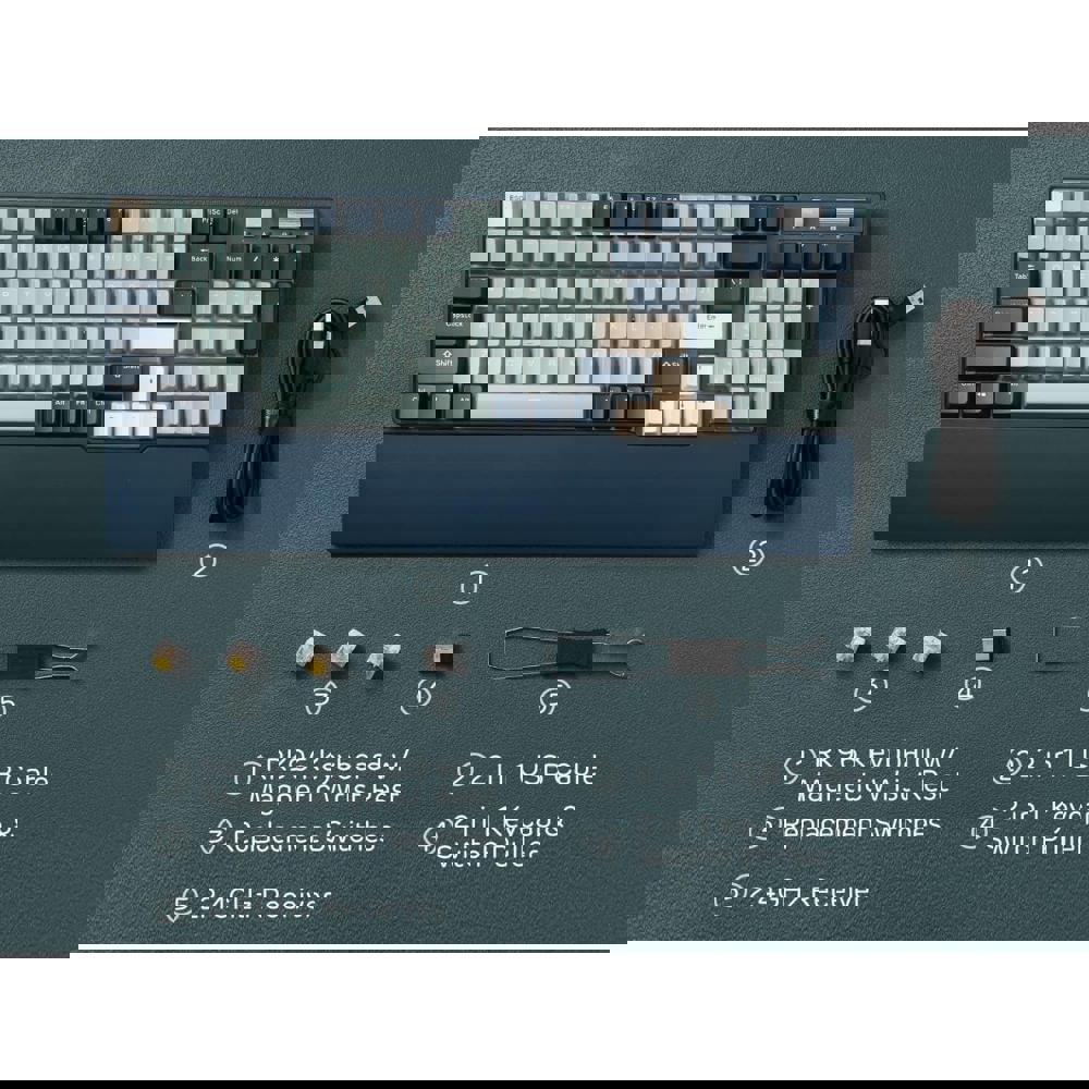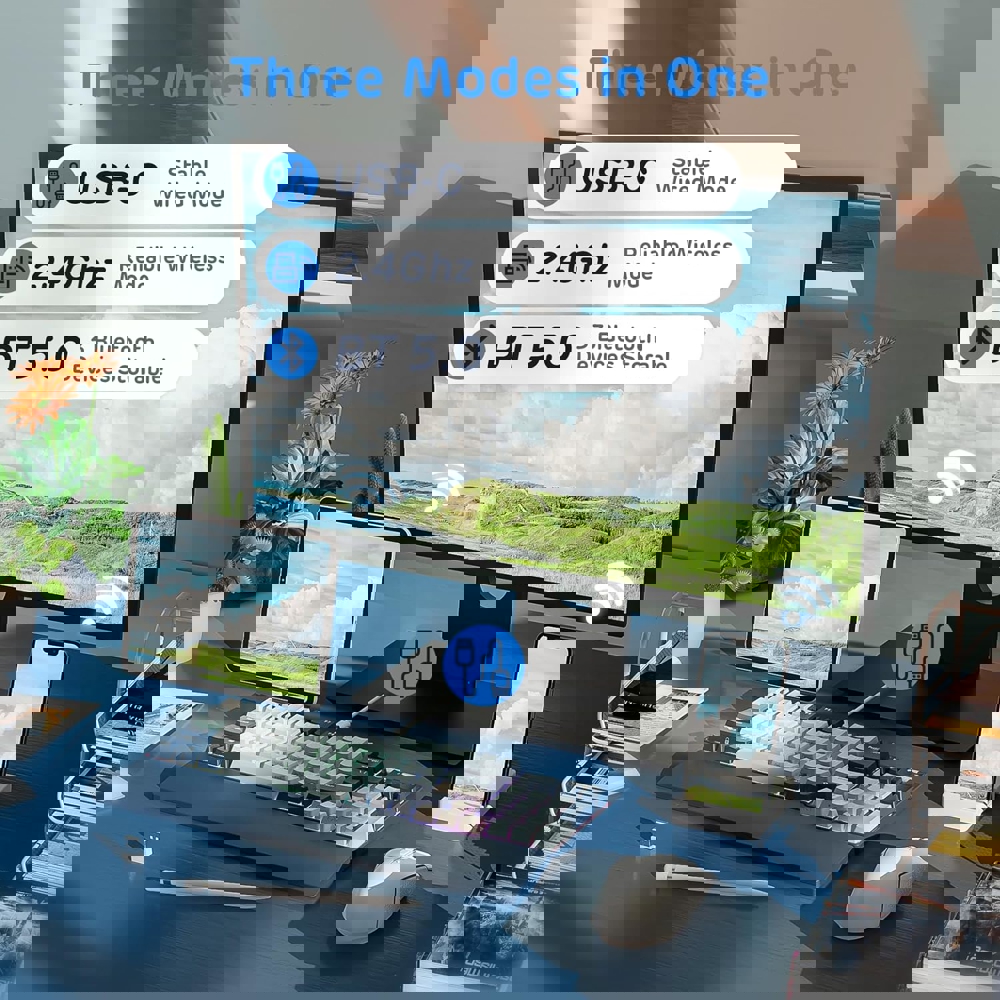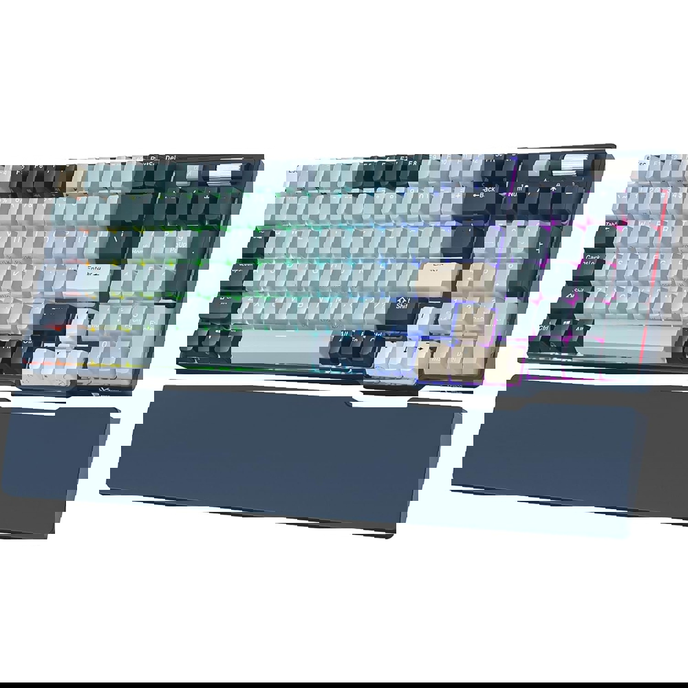 კლავიატურა Royal Kludge RK96 Mechanical Keyboard არის გამორჩეული მოდელი, რომელიც აერთიანებს ფუნქციონალს, კომფორტსა და თანამედროვე დიზაინს. აღჭურვილია Red Switch-ებით, რომლებიც გამოირჩევა რბილი და სწრაფი რეაგირებით, რაც განსაკუთრებით მოსახერხებელია გეიმერებისა და მათთვის, ვინც დიდხანს მუშაობს ტექსტებთან. Hot Swappable ტექნოლოგია საშუალებას გაძლევთ მარტივად შეცვალოთ ქისვები საჭიროებისამებრ, დამატებითი ხელსაწყოების გარეშე. კლავიატურას აქვს მრავალრეჟიმიანი კავშირი – USB Type-C, Bluetooth და 2.4GHz უსადენო რეჟიმები, რაც უზრუნველყოფს უნივერსალურ და სტაბილურ გამოყენებას როგორც კომპიუტერთან, ისე ლეპტოპთან ან მობილურ მოწყობილობებთან. კომპაქტური 96-ღილებიანი განლაგება ინარჩუნებს ყველა აუცილებელ ფუნქციას, ხოლო Forest Blue ფერის დიზაინი მას უნიკალურ იერს სძენს. RGB განათება მრავალფეროვანი რეჟიმებით ქმნის პერსონალიზებულ ატმოსფეროს და ხაზს უსვამს მის თანამედროვე სტილს. Royal Kludge RK96 არის საიმედო და პრაქტიკული არჩევანი, რომელიც იდეალურად მოერგება როგორც გეიმერს, ისე პროფესიონალს.