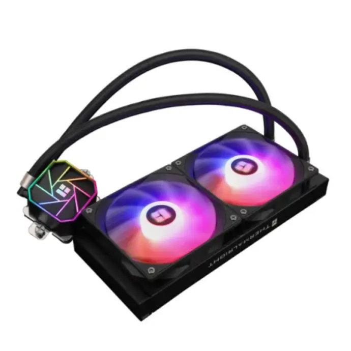THERMALRIGHT Aqua Elite 240 BLACK ARGB V3 არის მაღალეფექტური AIO სითხით გაგრილების სისტემა, რომელიც აერთიანებს ძლიერ თერმულ წარმადობასა და ვიზუალურ ეფექტურობას. 240 მმ რადიატორი და ორი დაბალი ხმაურის მქონე 120მმ ARGB ფანი უზრუნველყოფს ეფექტურ გაგრილებას თუნდაც მაღალი დატვირთვის პირობებში. მოწყობილობა თავსებადია როგორც Intel, ისე AMD პლატფორმებთან და მისი მონტაჟი მარტივია. შავი დიზაინი და RGB განათება იდეალურად ერწყმის თანამედროვე კომპიუტერულ სისტემებს. Aqua Elite 240 V3 განკუთვნილია ენთუზიასტებისთვის, რომლებიც ეძებენ ძლიერ და სანდო თერმულ გადაწყვეტილებას სტილის დაზარალების გარეშე.