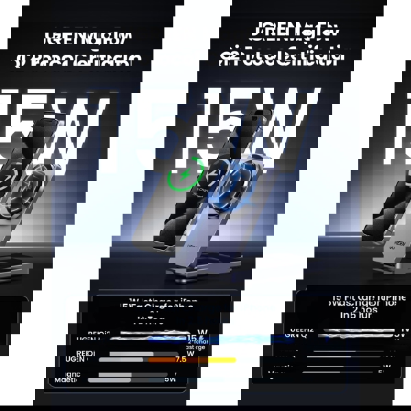 უსადენო დამტენი UGREEN W706 (45023) MagFlow Qi2, 15W, 2-in-1 Magnetic Wireless Charger, Grey