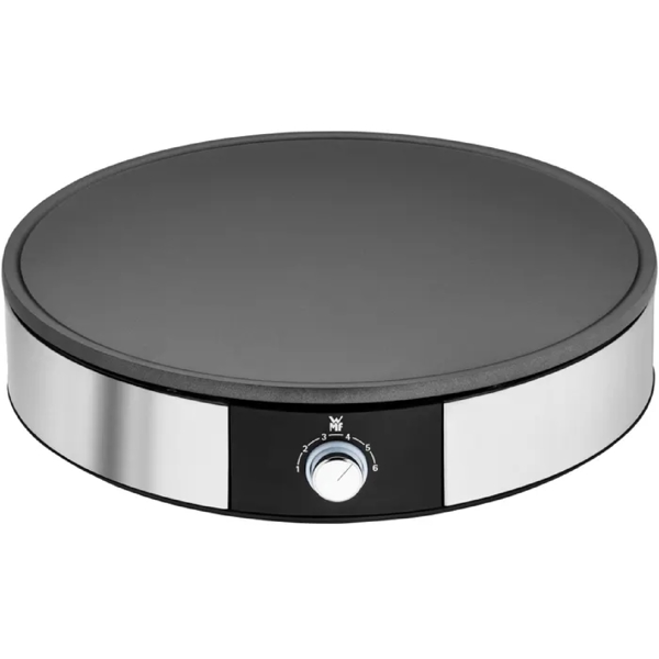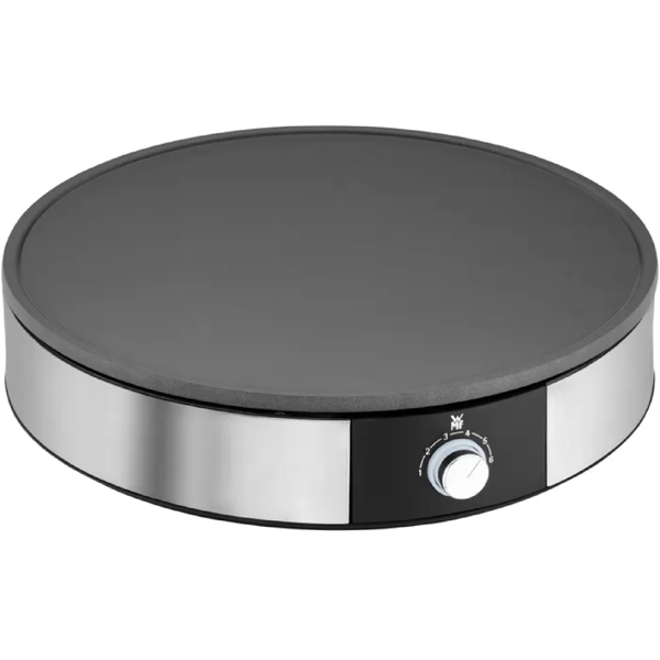 WMF LONO Crêperie არის პრემიუმ კლასის კრეპების აპარატი, შექმნილი Cromargan® უჟანგავი ფოლადისგან და დახვეწილი დიზაინით. მოწყობილობას აქვს 33 სმ დიამეტრის non‑stick დაფარვიანი ზეთსაბე ფენა, overflow-ის სპეციალური ორმხრივი ბარიერით, რაც თავიდან აგაცილებთ ცომის გადღვრას. 1600 W სიმძლავრე სწრაფად ცხელდება და უზრუნველყოფს თანაბარი დონით დაკაკუნებულ კრეპებს თითოეულ გამოყენებაზე. ტემპერატურის რეგულირება LED ინდიკატორით (წითელი = ცხელი, თეთრი = მზა) უზრუნველყოფს იდეალურ შედეგს. კომპლექტში შედის ტესტოს გასანაწილებელი და კრეპის ბანავერი, რომლებიც საშრობია ჭუჭყისა და ლაქებისგან, ხოლო მოხსნადი non‑stick ფენა და აქსესუარები იძლევიან Dishwasher-ში გარეცხვის შესაძლებლობას. ინტეგრირებული კაბელის სამაგრი გამარტივებს შენახვას. WMF LONO Crêperie არის შესანიშნავი არჩევანი როგორც ოჯახურ, ისე თუნდაც მეგობრულ კრეპების საღამოების ან “sweet & savory” მომზადებისთვის.