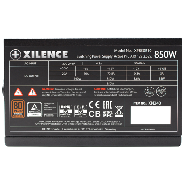 კვების ბლოკი Xilence Power Supply Gaming Series XP850R10-850 Watt 80+ Bronze