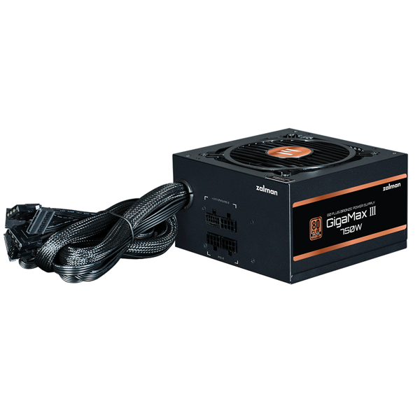 კვების ბლოკი Zalman PSU Gigamax 3 (750W), 88%, 80+ Bronze, 120mm, 1xMB 24pin(20+4), 2xCPU (8pin(4+4)+8pin), 3xMolex, 6xSATA, 4xPCIe 8pin(6+2), 1x12VHPWR, Semi Modular